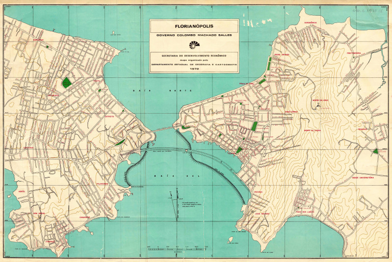 A obra começou em 1971 com o aterro da Baía Sul, no início do governo de Colombo Machado Salles, que dá nome à ponte.